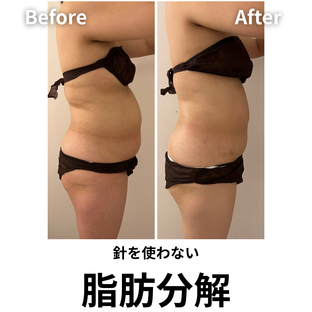 従来の脂肪分解施術と異なり、注射やメスを使わないため、痛みもなく、ダウンタイムがないのが最大の特徴です✨