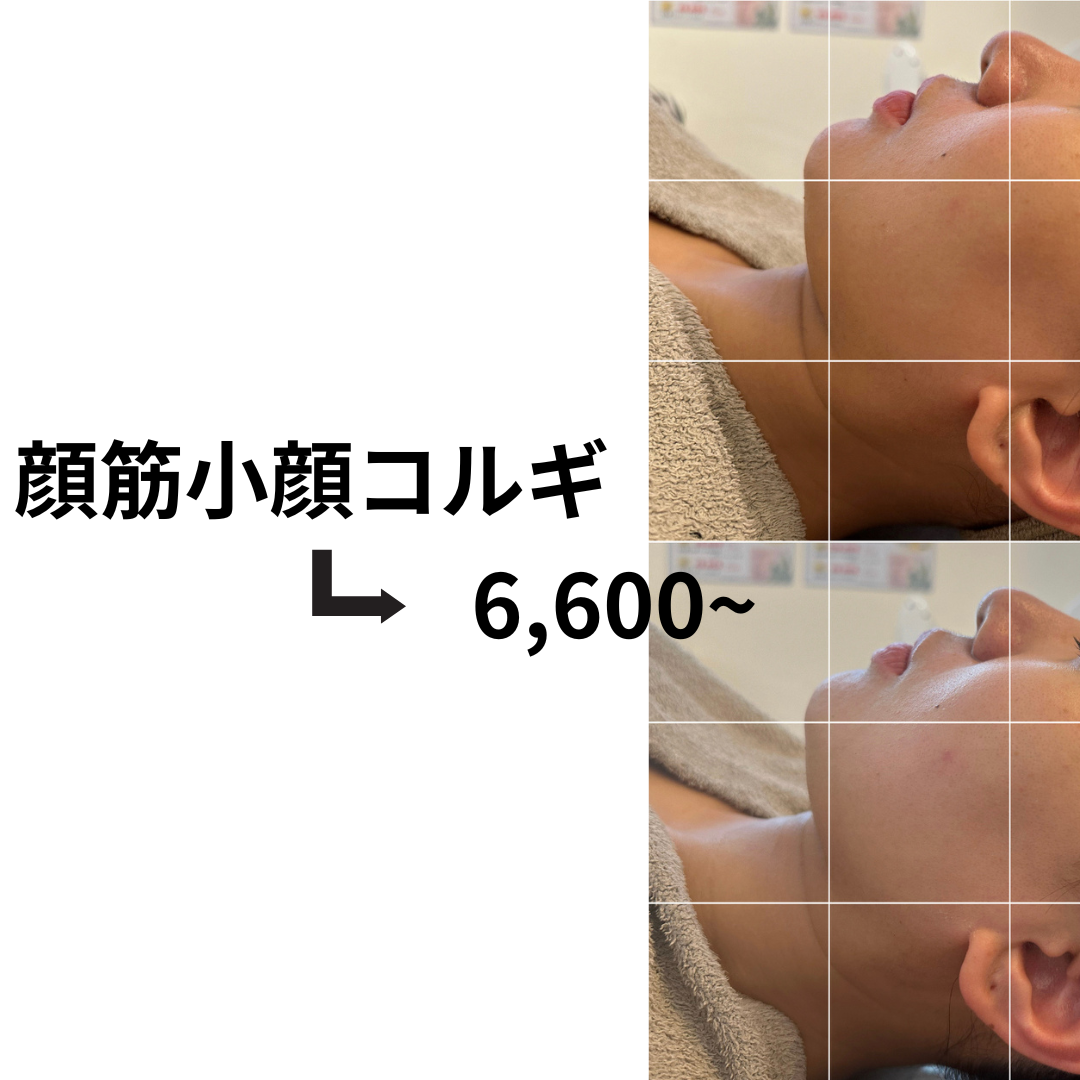 そんなお悩みにおすすめなのが、当店の【オリジナル顔筋小顔コルギ】